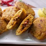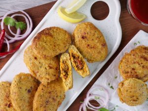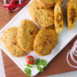 Grease hands with oil,take a mixture (55g),make a ball & flatten on your palm,add mixed pickle (1 tsp),cover properly & make kababs of equal sizes (makes 10).