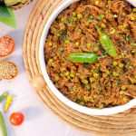 -Add green chilli,grated eggplant,peas,pink salt,turmeric powder,coriander seeds,red chilli powder, cumin seeds,kashmiri red chilli powder,fennel seeds & mix well.