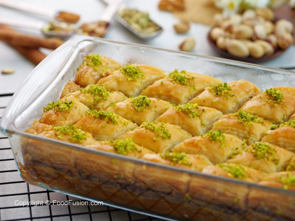 Golden, crispy layers of handmade phyllo, filled with a rich nutty mixture and soaked in fragrant syrup. Every bite melts in your mouth, balancing crunch and sweetness to perfection. Baklava bliss, made from scratch! #happycookingtoyou #foodfusion #araywahh #monthofgood