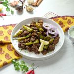 -Serving dish mein fried beef,tayyar balochi tikka masala,hara dhania aur lemon juice dal kar ache se mix karein aur dhak kar 2-3 minutes ke liye rakh dein taake masalay ache se absorb ho jayein.