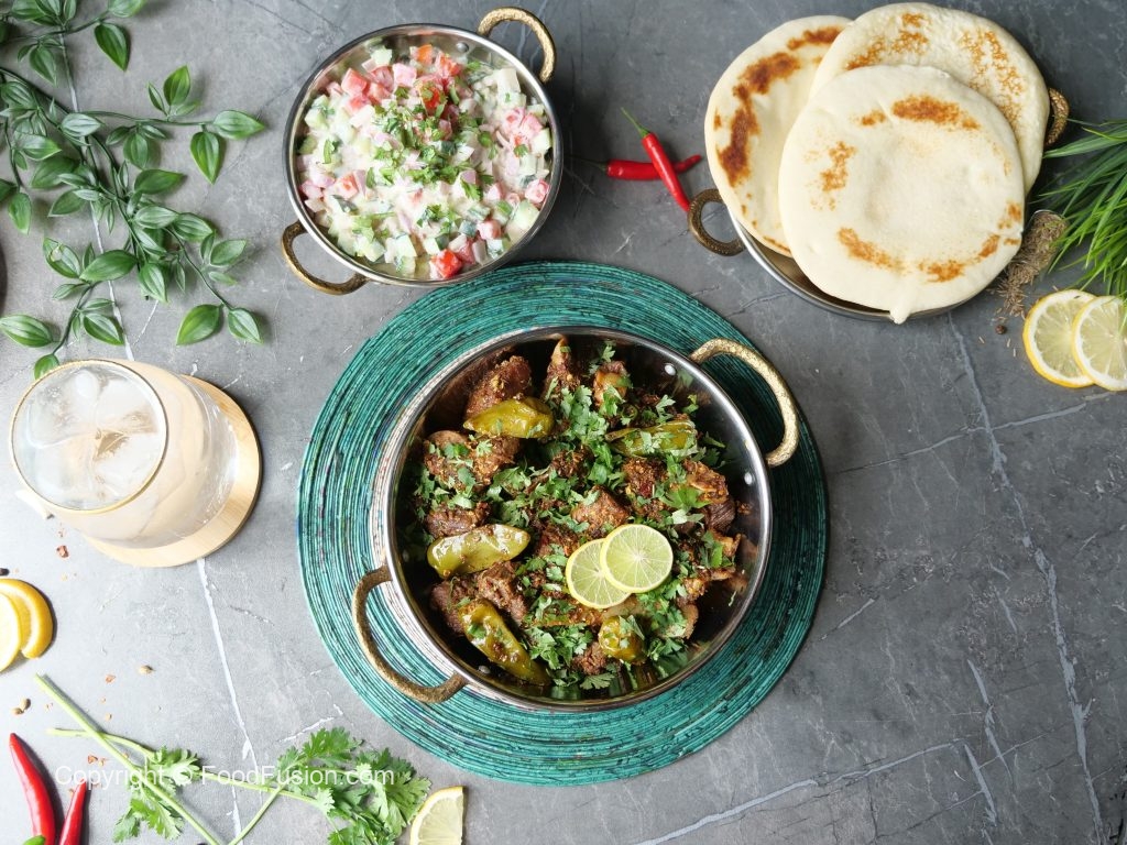 -Hara dhania aur lemon juice dal dein,kachomar salad & naan ka saath serve karein!
