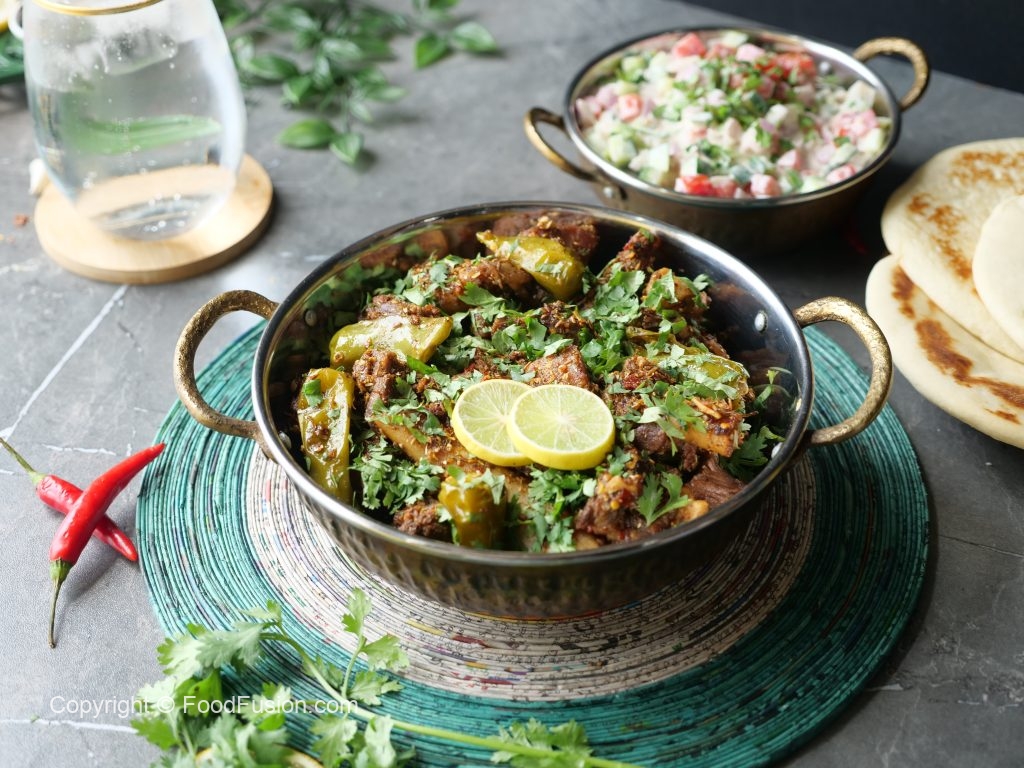 -Hari mirchon mein slit laga lein,karahi mein dal ker ache tarhan mix karein aur darmiyani ancch per 8-10 minutes kliya paka lein.