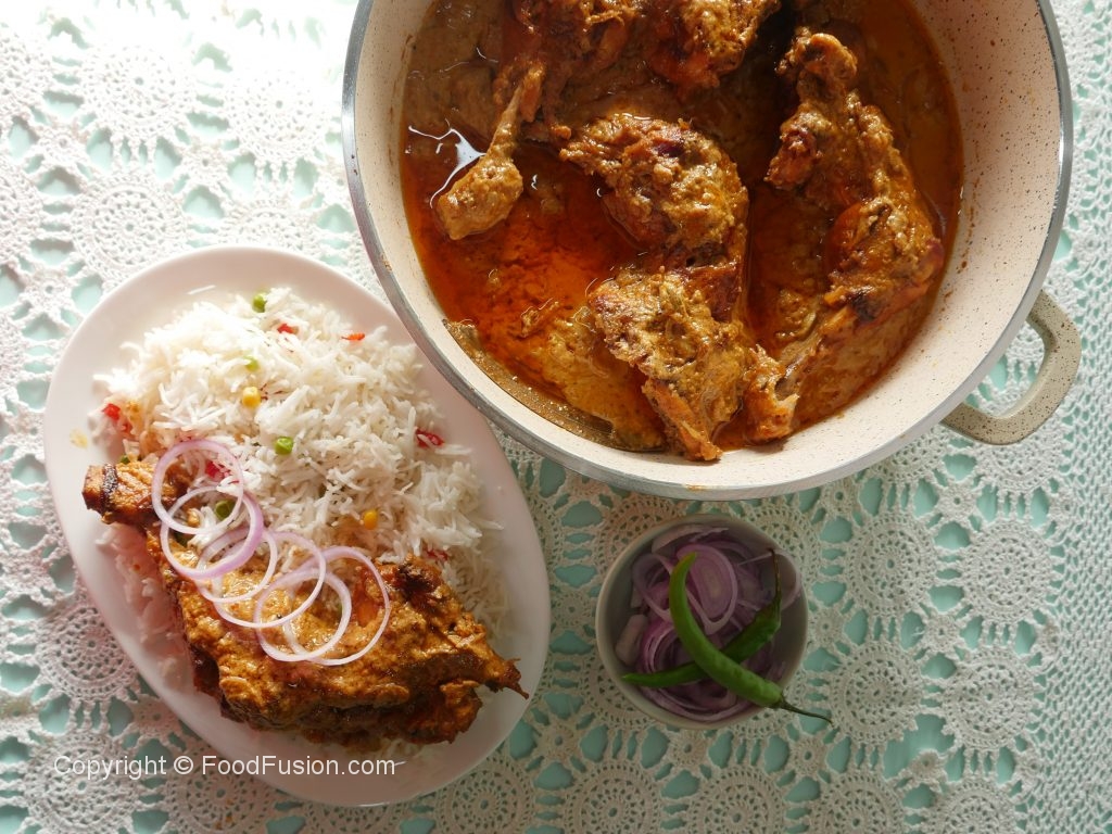 In pot,add cooking oil,marinated chicken pieces and fry from both sides until golden brown (8-10 minutes each side) & set aside.