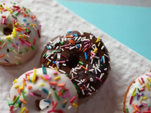 -Dip one side of doughnuts in melted chocolate & place it on wire rack to allow excess melted chocolate to drip off.
