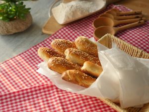 Knead dough again then divide dough into 14-15 strips (7 inches) and shape each into a uniform roll or long breadsticks.