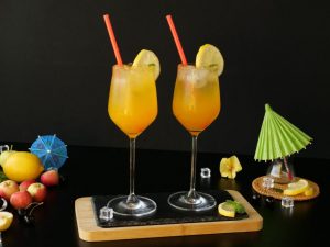Cherries & lemon slice sa garnish ker ka serve karein!