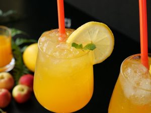 Apple juice,tayyar lemon syrup,ice & 7up dal dein.