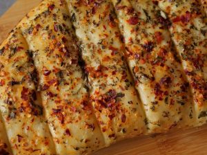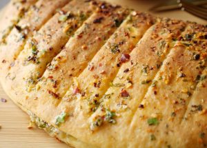 Baking ka bad,garlic herbed butter laga ker serve karein!