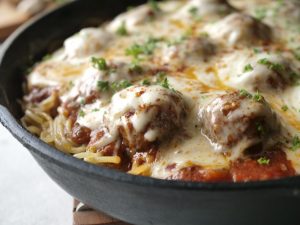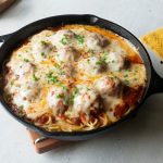 Add prepared meatballs with sauce,add cheddar cheese,mozzarella cheese & red chilli crushed,cover & cook on low flame until cheese melts (4-5 minutes).