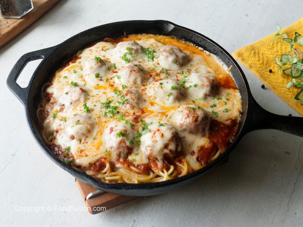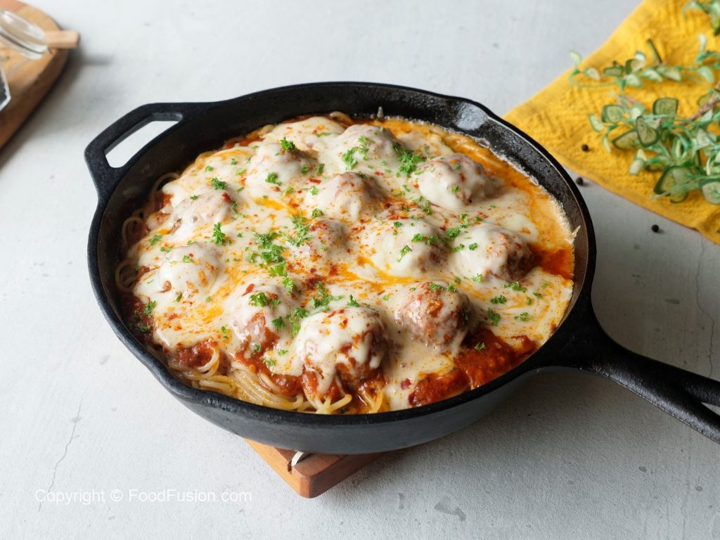 Mouth watering delight for everyone, Cheese meatball with Spaghetti infused with a perfect balance of spices and flavoring. #HappyCookingToyou #FoodFusion #Dashi