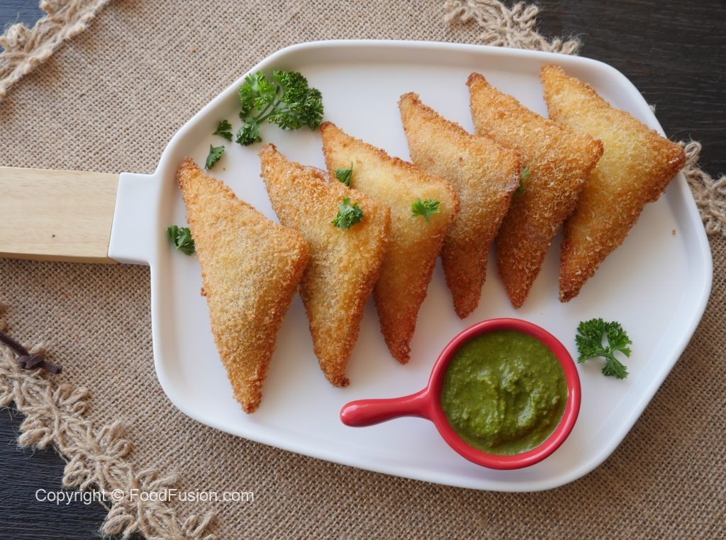Cut corners of bread slices and roll of with the help of rolling pin.