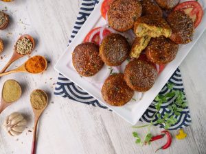 -Grease hands with oil,take a small quantity of mixture (60g) & make a kababs of equal sizes.