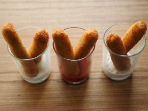 Grease your hand with oil,take a mixture and make a ball and roll out in finger shape,coat in all-purpose flour then dip into beaten eggs and coat in bread crumbs & keep it in freezer for 2 hours.