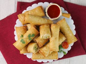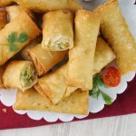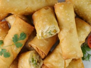 -Take a roll sheet (8x8 inch),add prepared filling in the center,fold both sides,apply flour slurry & roll up (makes 21).