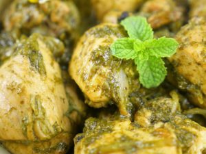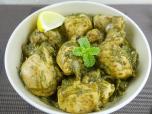 Add Salt and and green yogurt mixture and mix well. Add 2 tbs water and cover to cook for 10-15 minutes until chicken is tender.