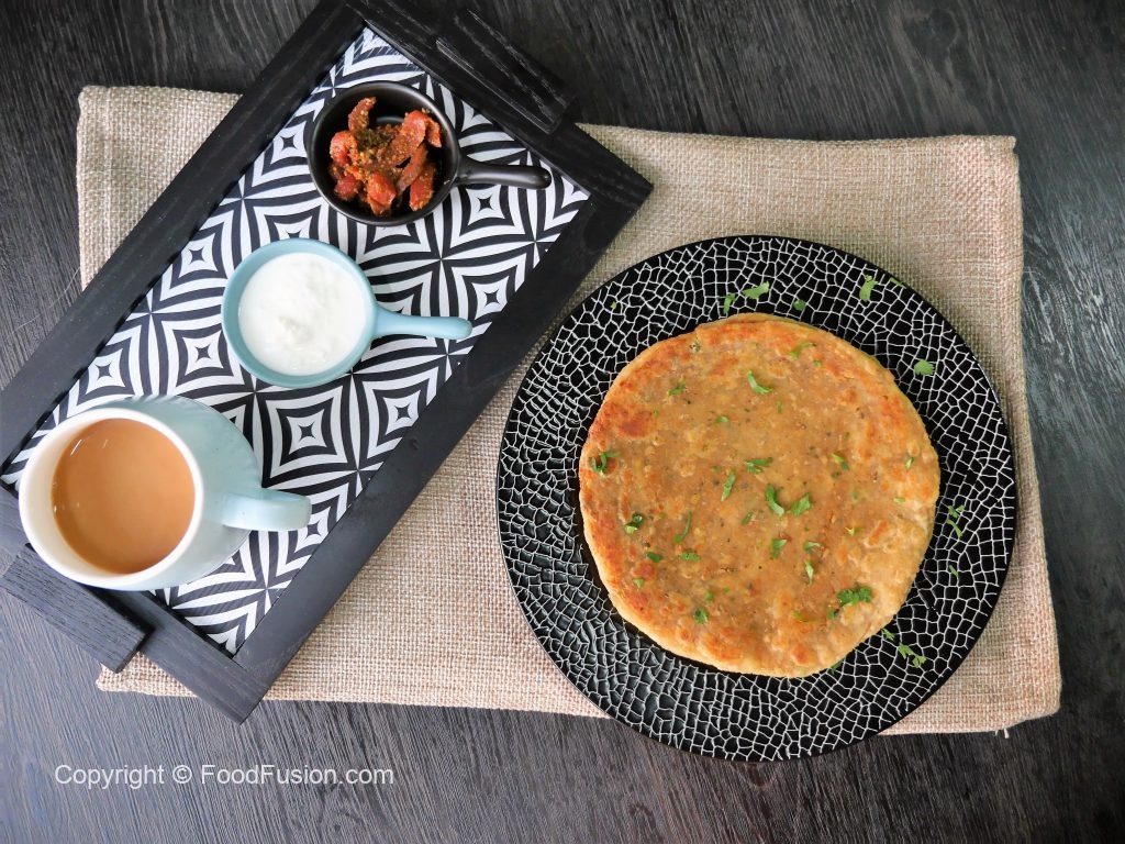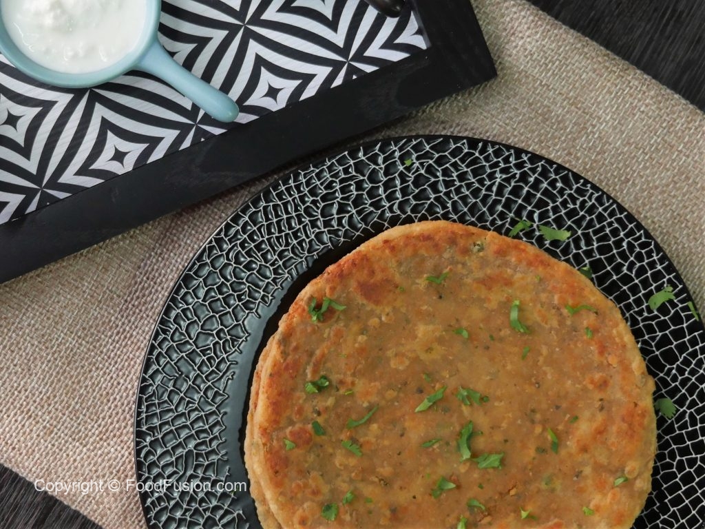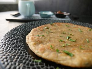 Flatten a dough ball with the help of hands and fry it in heated griddle until cooked from both the sides.