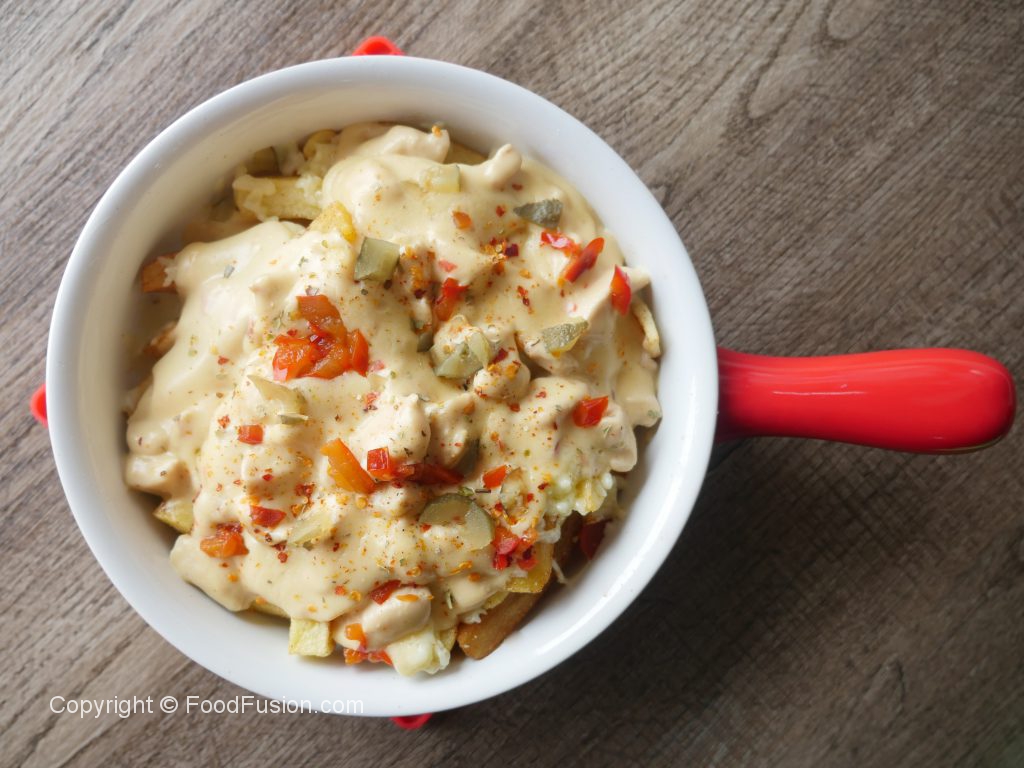 Tempting Loaded fries with white sauce recipe. Give it a try and enjoy with family. #HappyCookingToYou #SimplySufi #SufiOilAndGhee