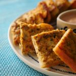 Spread prepared chicken mince on bread slices, sprinkle cumin seeds and press slightly.