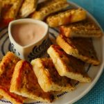 Frying pan mein oil dal dein aur bread slices (spread side downwards) rakh dein aur halki ancch per 4-5 minutes kliya fry ker lein.