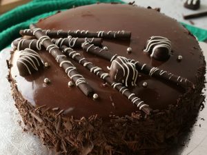 -Pour reserved chocolate ganache warm on the top of the cake,apply grated chocolate on the sides of the cake & refrigerate for 30 minutes.