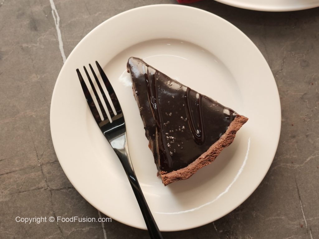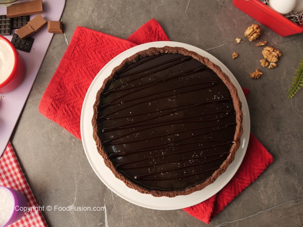 Pour prepared walnut salted caramel sauce over the tart,spread evenly & refrigerate for 30 minutes.