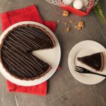 Pour prepared chocolate ganache over walnut salted caramel sauce,spread evenly & let it set in refrigerate for 2 hours.