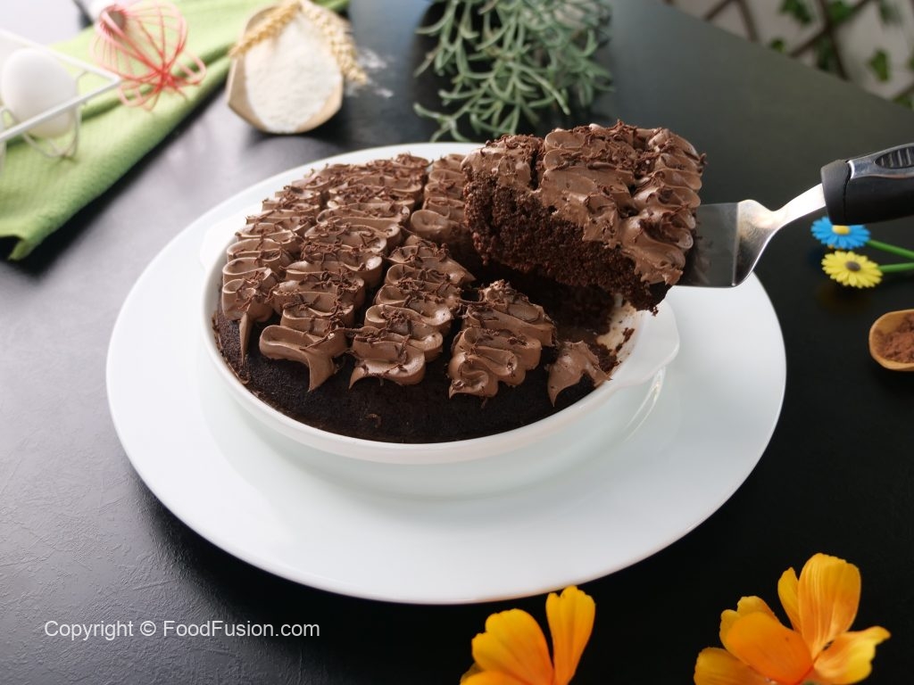 -Carefully remove cake from frying pan & poke holes with help of chopstick.