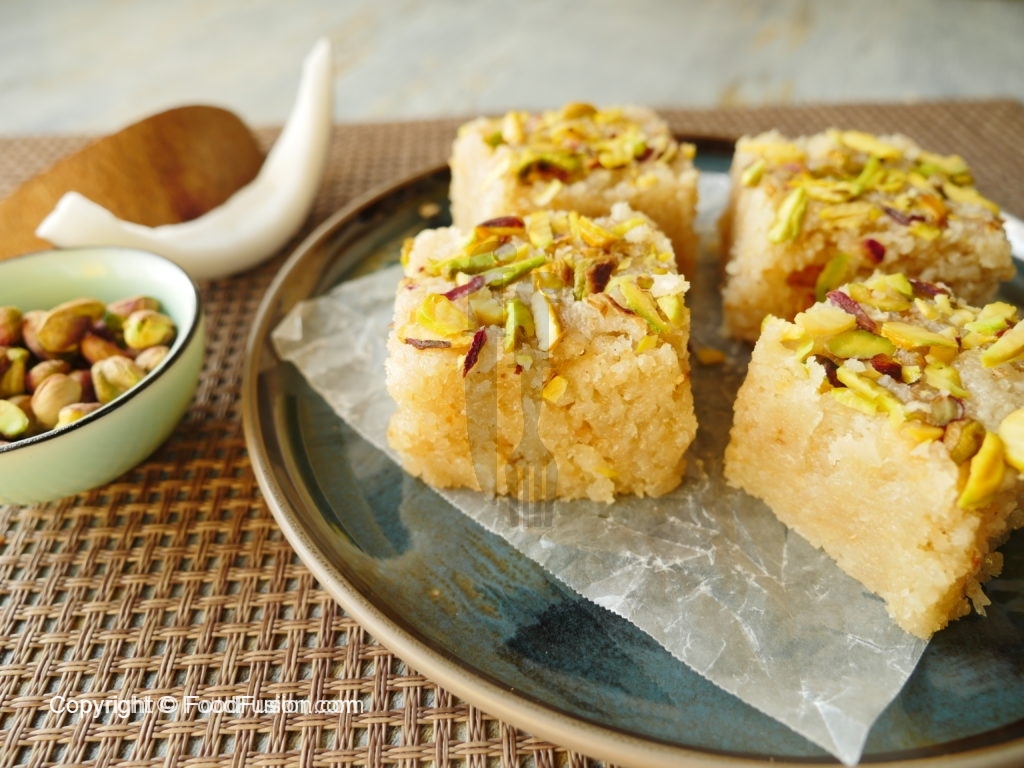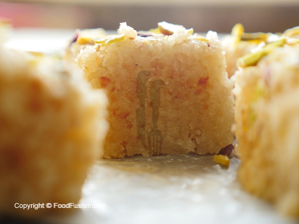 Soaked desiccated khopra use kertay hoye yehe recipe follow karein aur cooking ka waqt doodh ko skip ker dein.