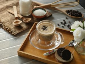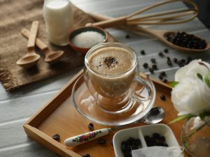 Add 1-2 tbs of prepared coffee base and whisk well until frothy.