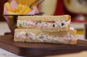 -Spread the prepared chicken mixture on bran bread slice,cut into triangles & serve with French fries or in a lunch box for kids (makes 8-10).