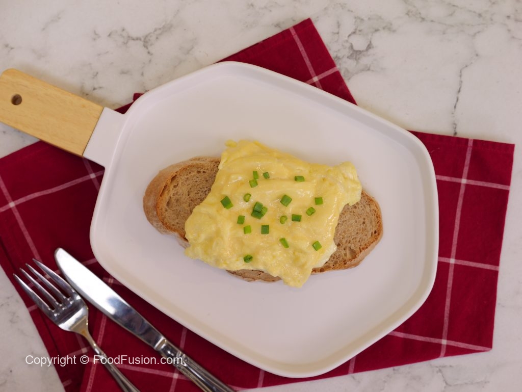 Remove the pan from the heat when the eggs are mostly set,but a little liquid egg remains.