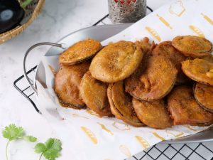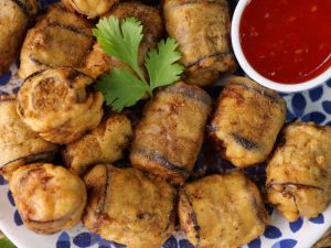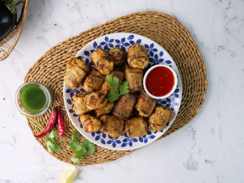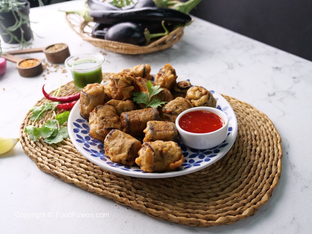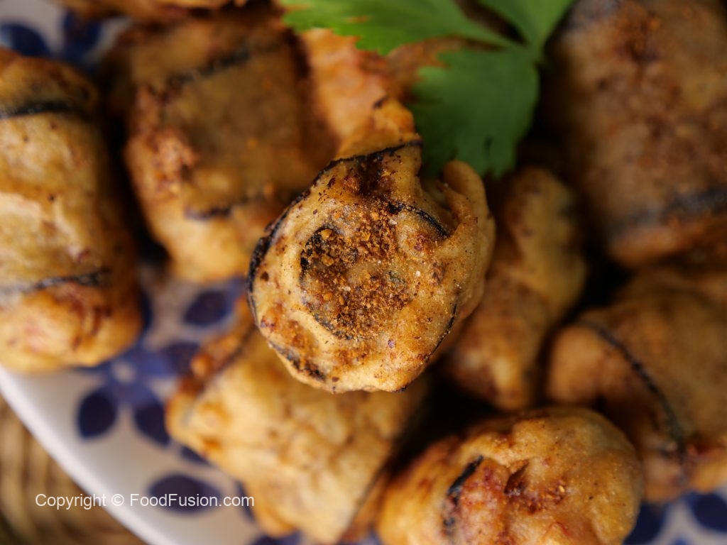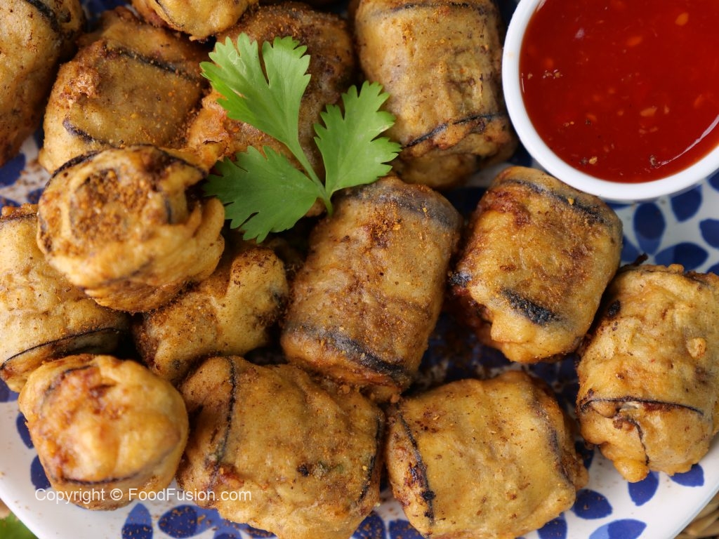 Try our crispy Beguni & Baingan Rollup Pakora Recipe to add something new on the iftar table. #happycookingtoyou #foodfusion #ramazanspecial #Pakora