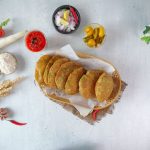 -Dust dry flour & roll out with the help of a rolling pin, make 5 inches puri. (Makes 13-14)