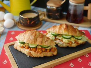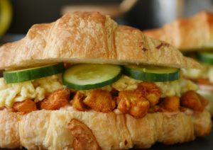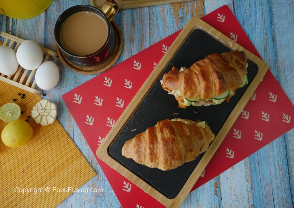 Croissant breakfast sandwich ko chai ka saath serve karein!