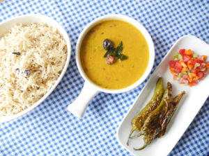 Daal with Zeera Chawal and Talli hui Mirchein
