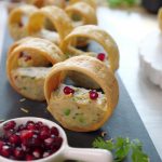 -Serve deconstructed samosa chaat with pomegranate,nimco sev,tomato,onion,chickpeas,green chutney & imli chutney.