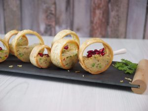 -Her strip ko round cookie cutter per wrap ker lein aur pani laga ker properly seal ker lein.-