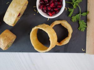 -Wrap each strip on round cookie cutter,apply water & press to seal properly.