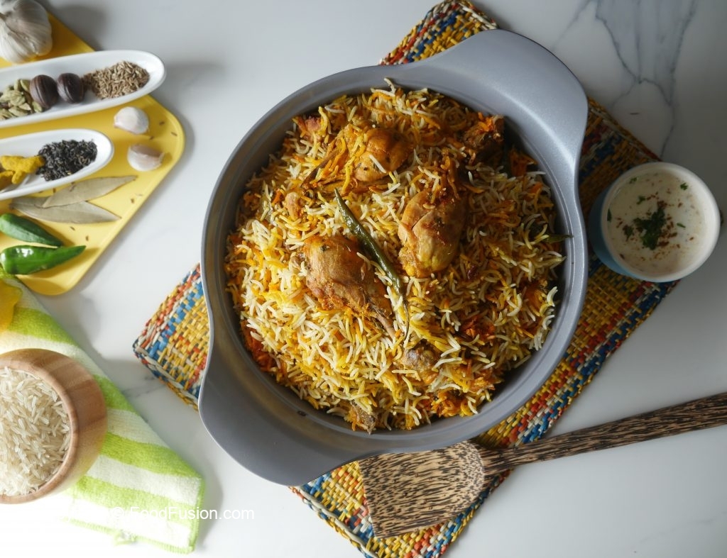 Fried pyaz,tayyar dahi,boiled chawal ki half quantity,reserved tayyar spice mix,baqi bachay hoye chawa aur cooking oil dal ker dhak dein aur halki ancch per 18-20 minutes kliya steam cook ker lein & serve karein!