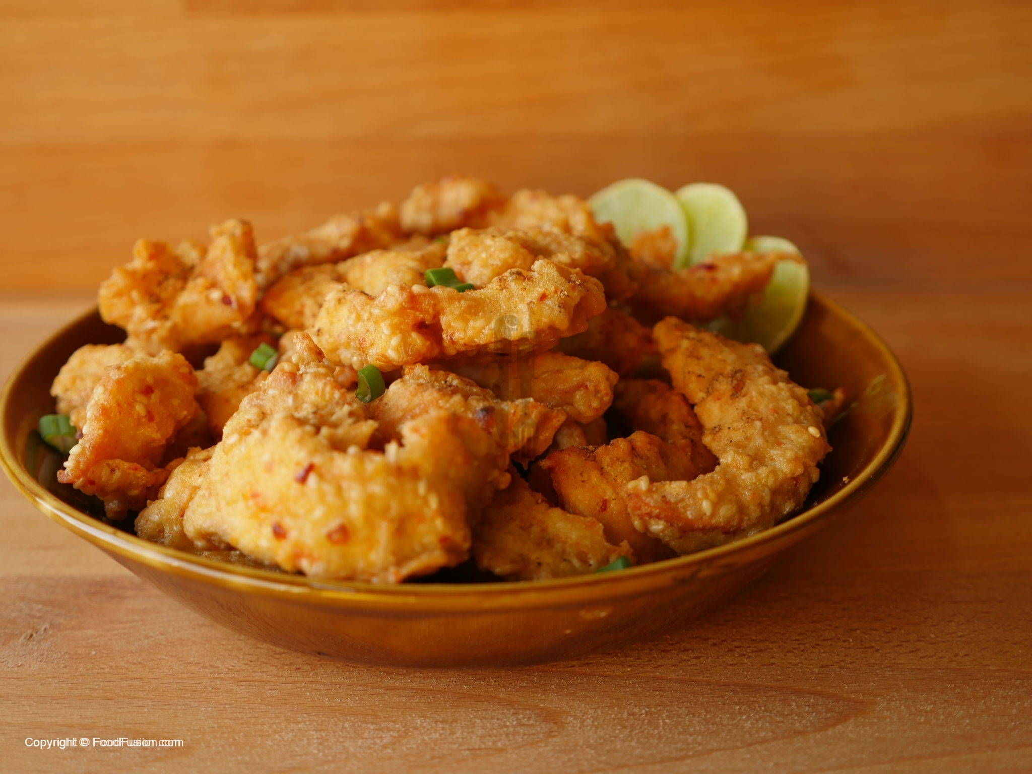Add corn flour,sesame seeds,red chili crushed,chicken powder,salt and mix.