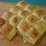 Grease 8 x 8” square baking pan with melted butter and place small balls of dough.