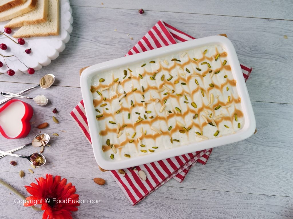 A delectable dessert made from fried bread slices infused in a thick and sweetened gravy made with the goodness of Olper’s Dairy Cream, this Shahi Tukray Lasagna is the perfect dessert for your Eid spread. #OlpersDairyCream #GoodnessBarhao #FoodFusion #HappyCookingToYou #DigitalAmmi #Shahitukra #DessertLasagna