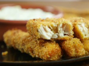 A tip for you is that you can freese the fish fingers for a few days but not more. Use think breadcrumbs for the nice exterior texture.