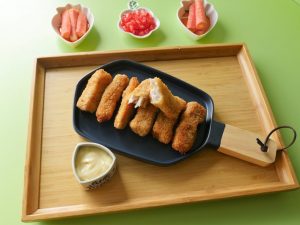 Finger fish fillets mein lemon juice dal ker evenly laga lein & side per rakh dein.