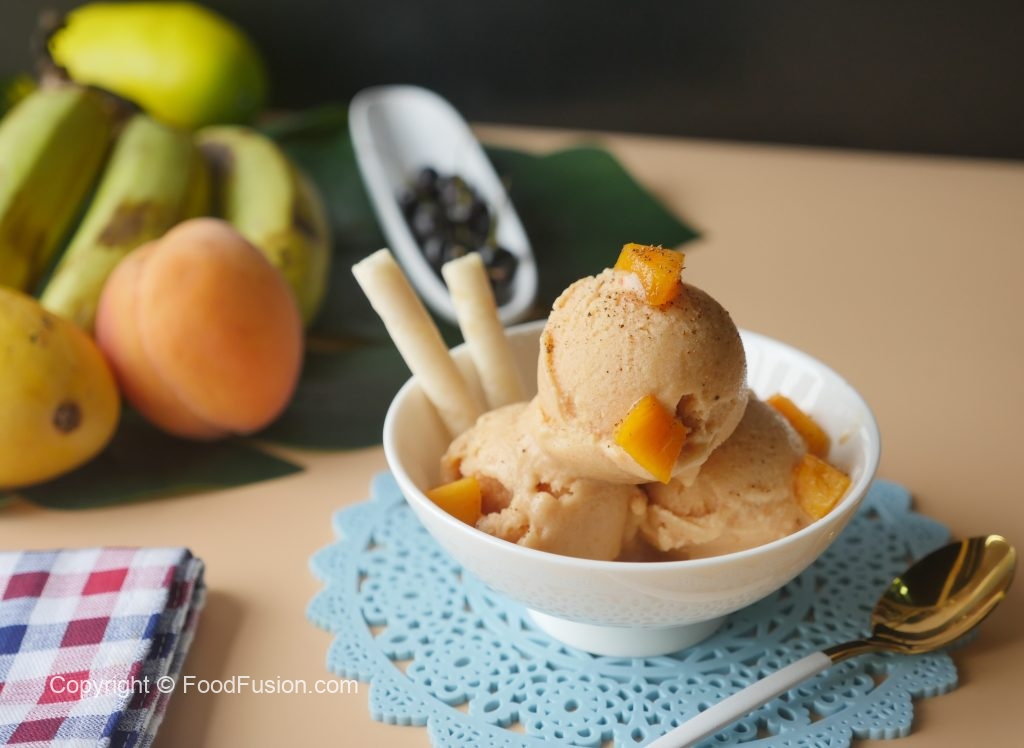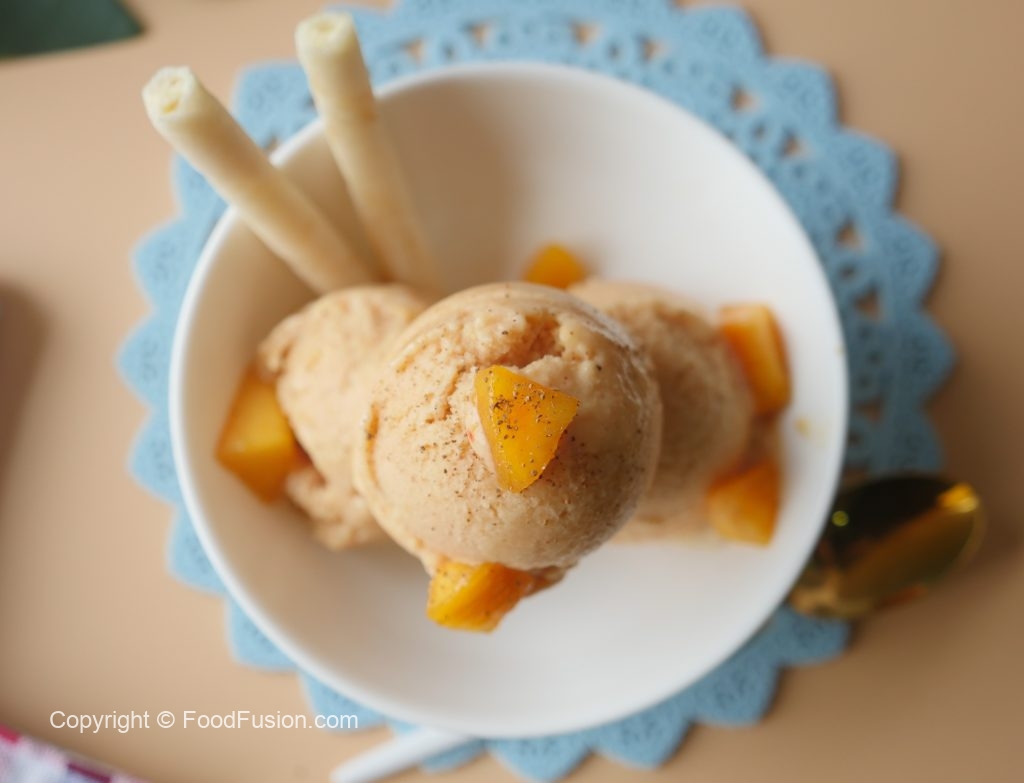Blender mein frozen peaches,hanged yogurt,brown sugar aur darchini powder dal ker smooth hunay tak ache tarhan blend ker lein.
