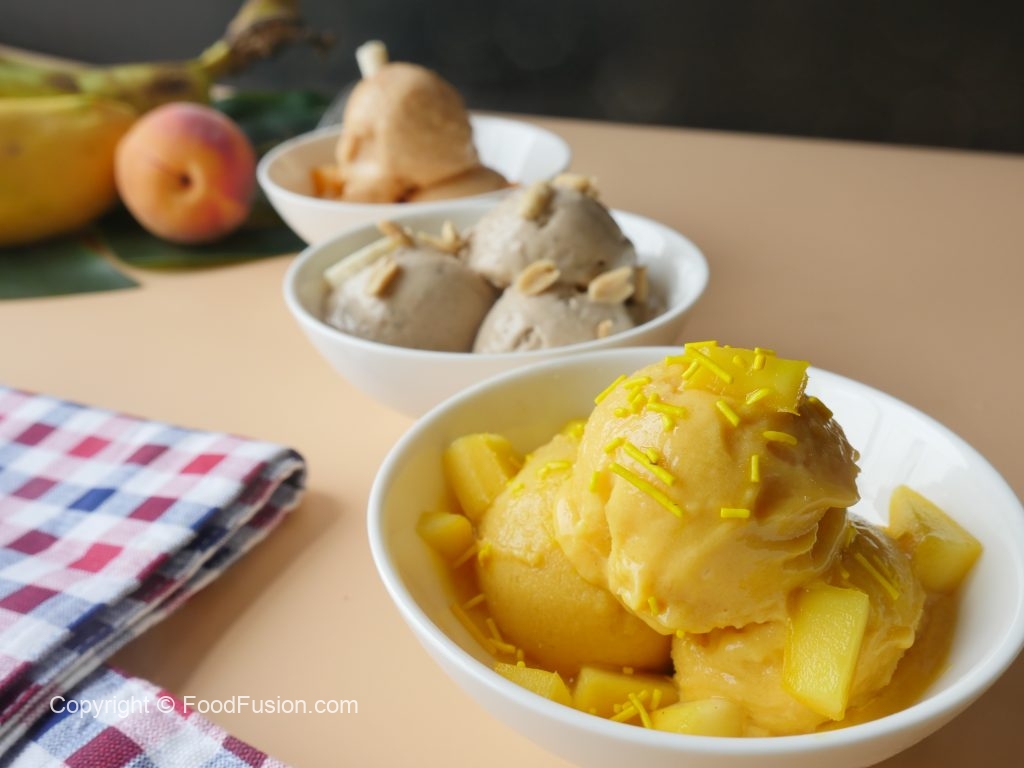 Blneder mein frozen mangoes,hanged yogurt,shahad aur vanilla essence dal ker smooth hunay tak ache tarhan blend ker lein.