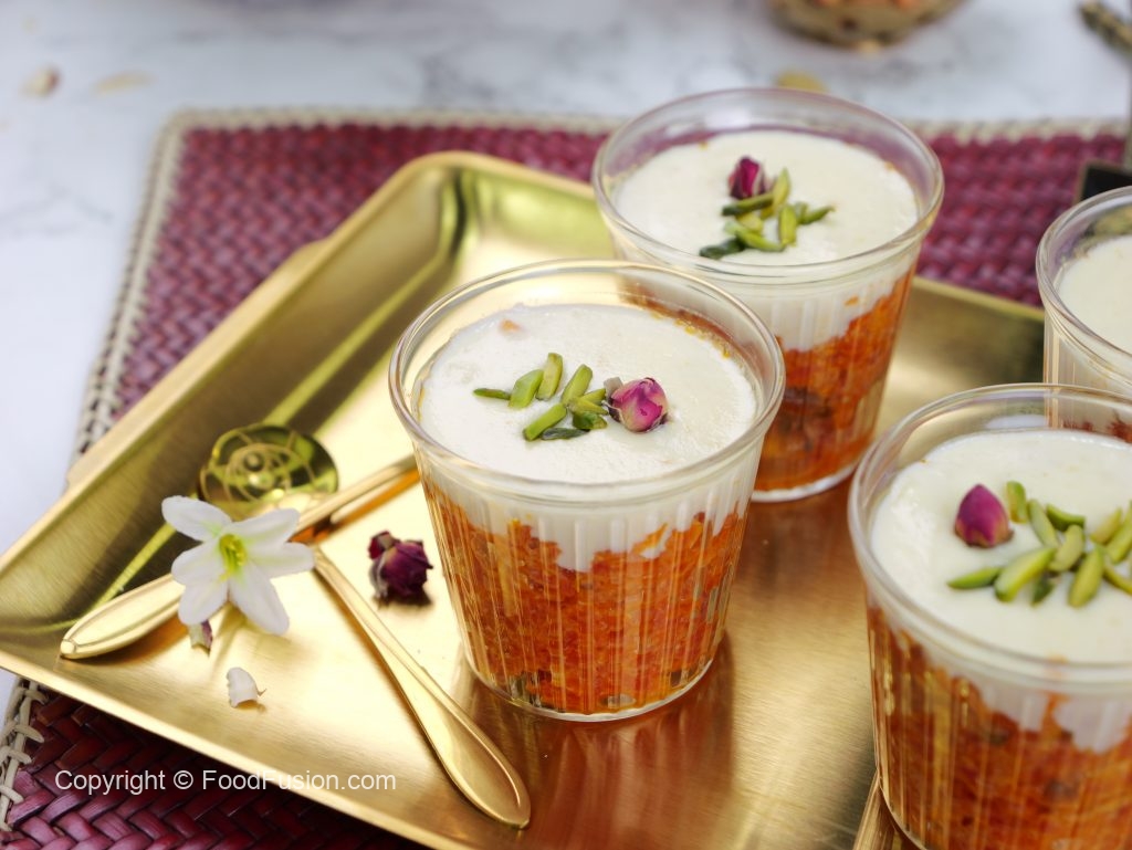 An easy and presentable way to serve gajar ka halwa to guests while managing your portion size. #happycookingtoyou #foodfusion #gajarkahalwa #gajarhalwa #digitalammi #desserts #desifood