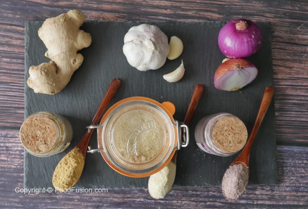 Spice mixer mein dried pyaz dal dein aur ache tarhan grind ker ka powder tayyar ker lein aur strainer ki madad sa strain ker lein (yields 50 gms).