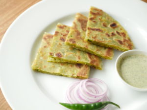 Bowl mein atta,ghee,namak aur blended green mixture dal ker ache tarhan mix ker lein.