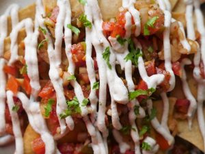 On serving plate,place nachos,prepared salsa,drizzle yogurt sauce,sprinkle fresh parsley & serve!